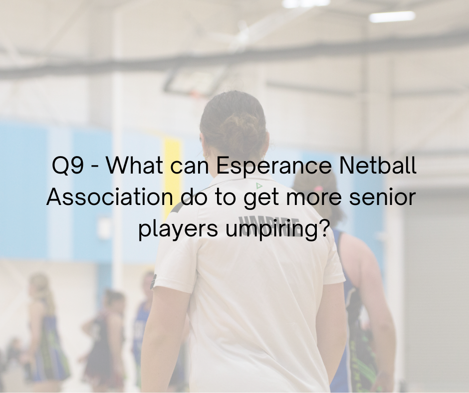 Q9 What can Esperance Netball Association do to get more Senior players umpiring?