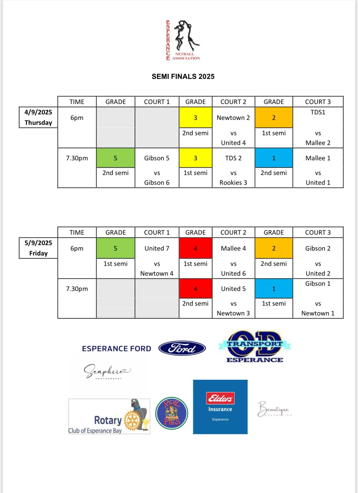 Semi Final Fixtures 31 Aug Written By HAYLEY BARRETT Senior semi finals, 4th and 5th of September 2025. HAYLEY BARRETT